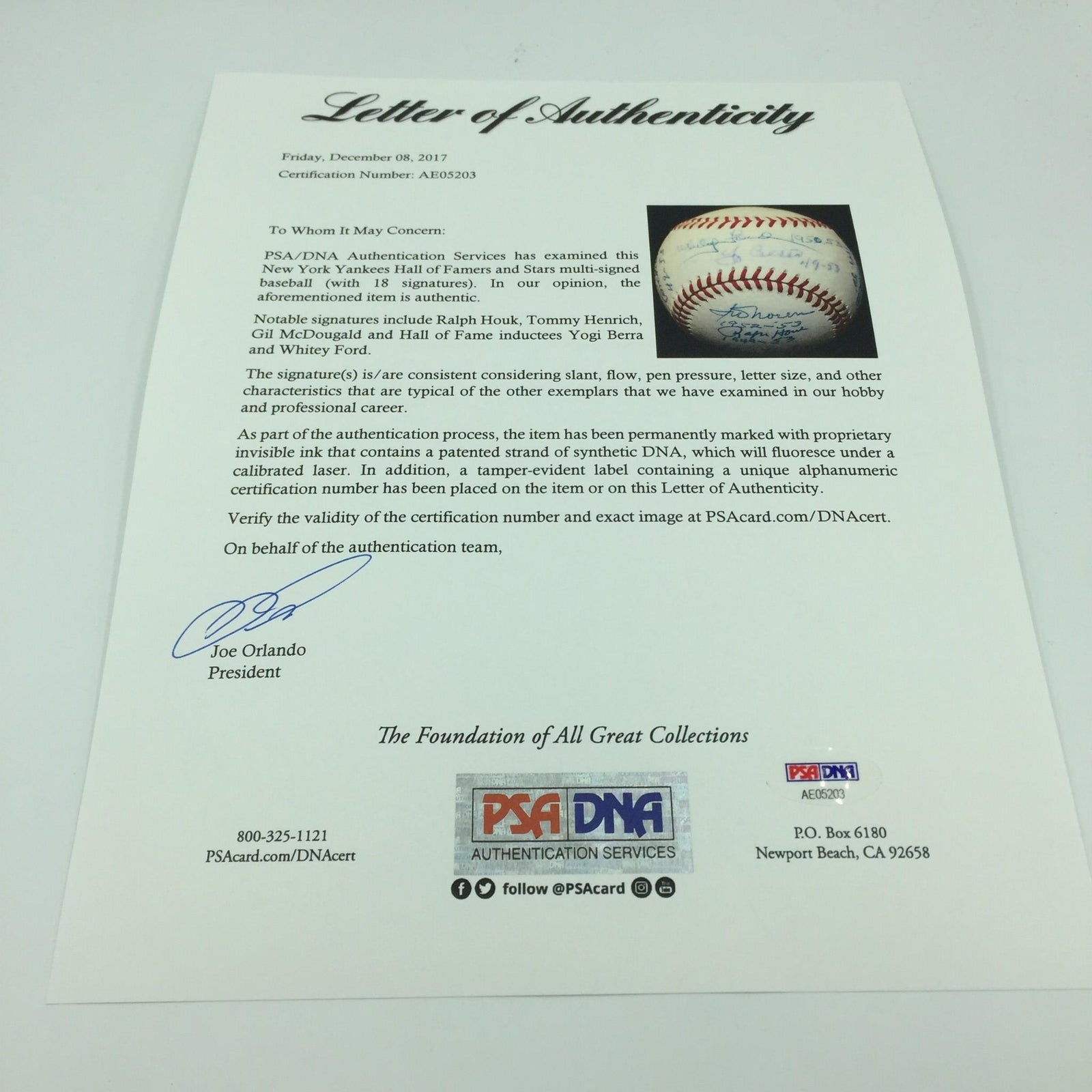 Yogi Berra & Whitey Ford 1950's Yankees Greats Signed Baseball 18 Sigs PSA DNA